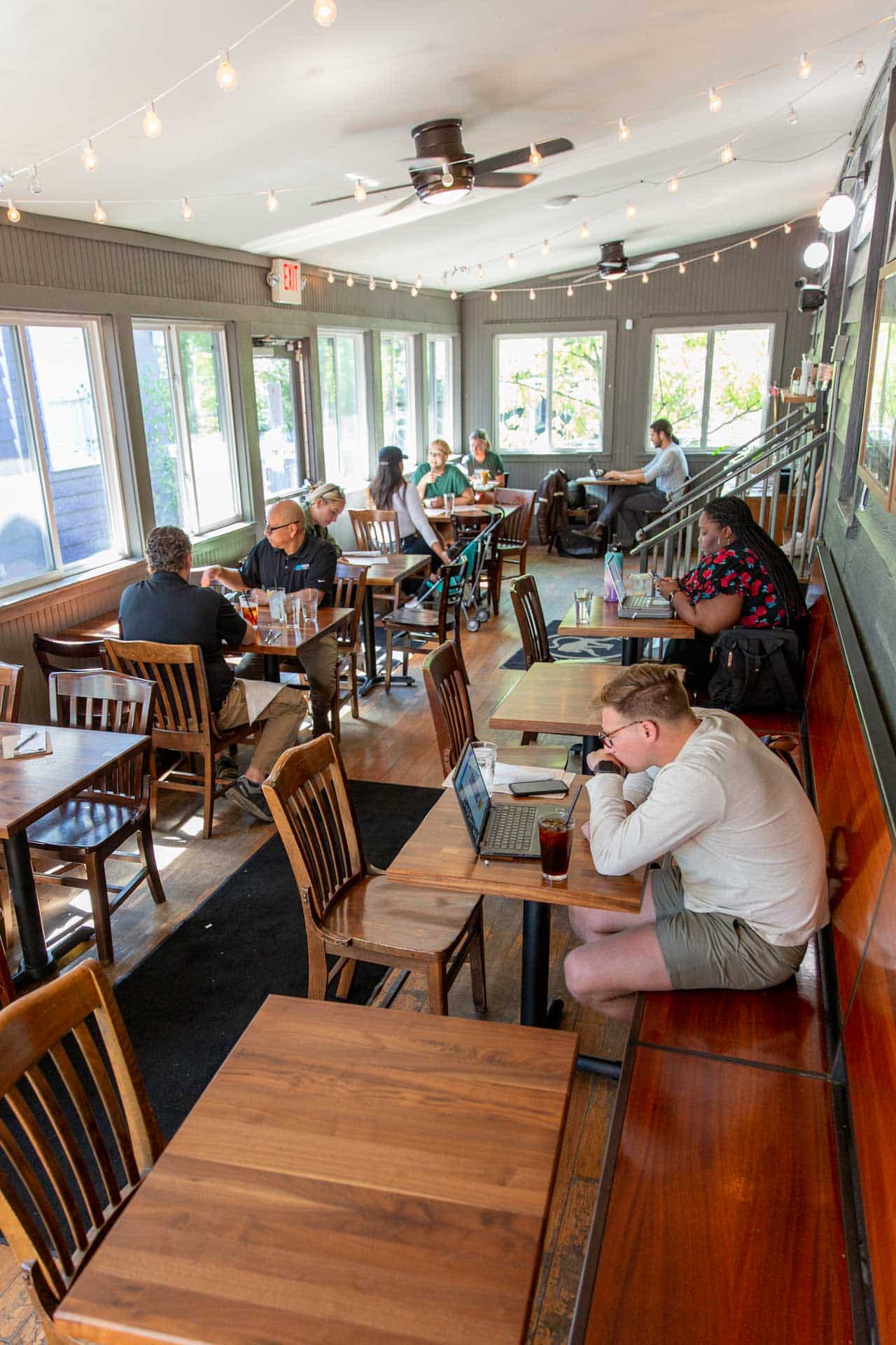 Dining In: At Frothy Monkey in 12South, guests are welcome to dine inside or outside in the beer garden. Please see the host stand to be seated.
