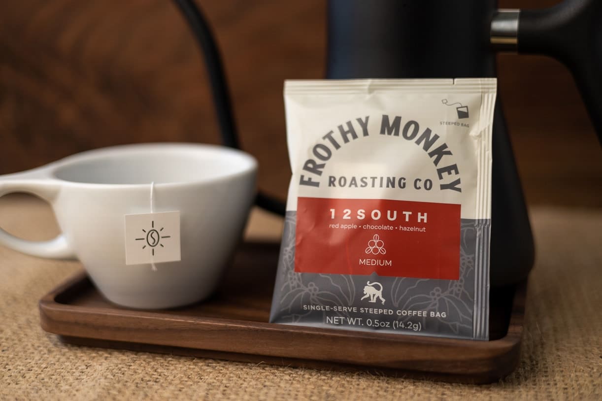 Each slim bag contains freshly ground coffee that brews a perfect cup in just five minutes. Whether you’re in a hotel room, at the office, or somewhere without your usual brewing setup, you’ll get the same plush body and natural caramel sweetness that makes 12South our most popular coffee.