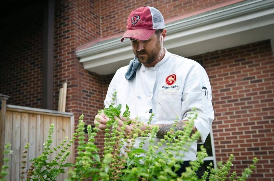 Smoked Chicken Rillette over Edamame and Black-Eyed Pea Salad with Watermelon Radish, Micro Basil, and Apricot Gastrique
