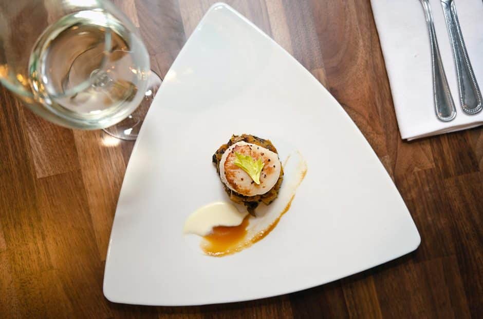 Pan-Seared Northeastern Scallop over Fennel-Citrus Slaw, Roasted Beets, and Herbed Sabayon