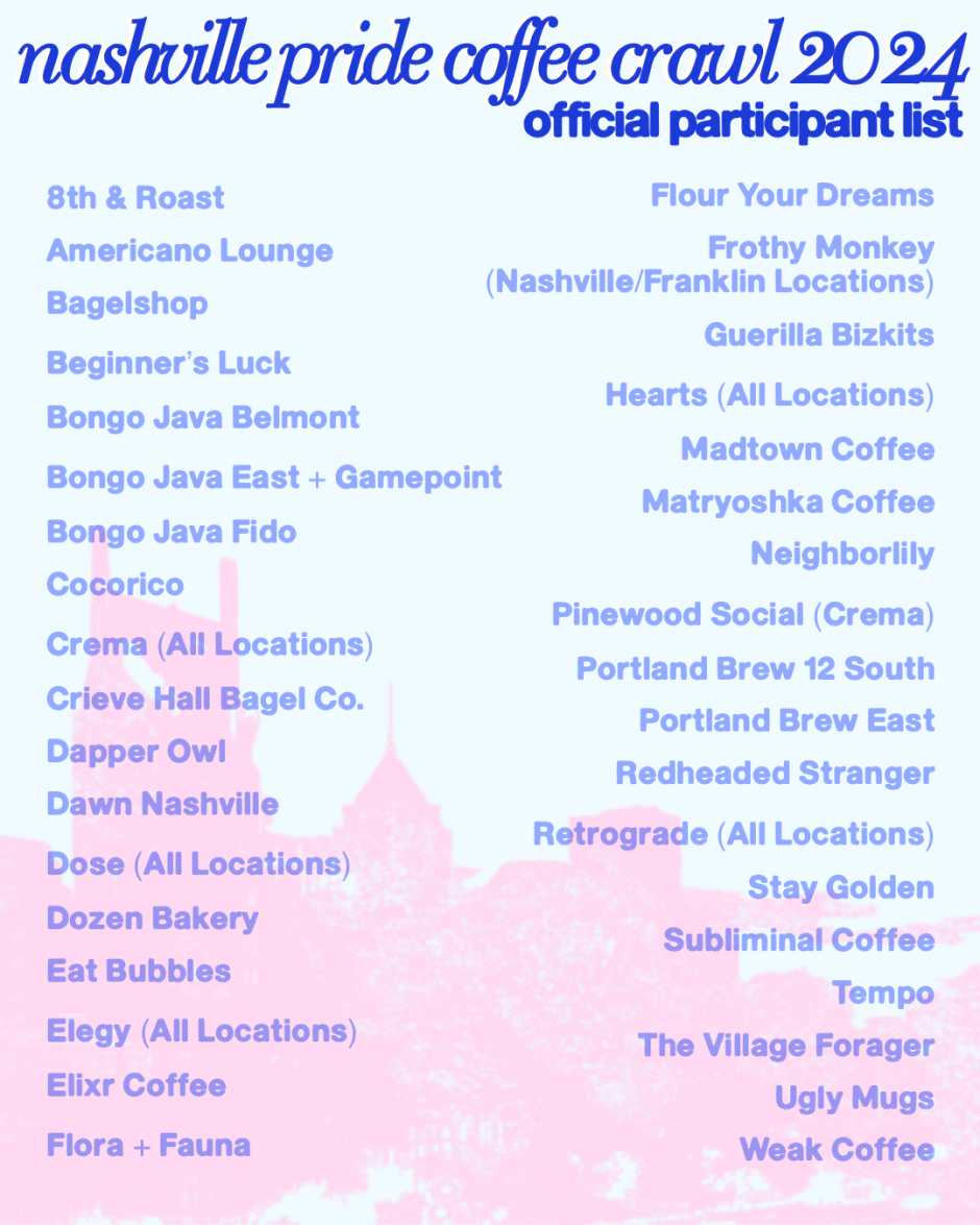 Nashville Pride Coffee Crawl 06.09 – 06.22