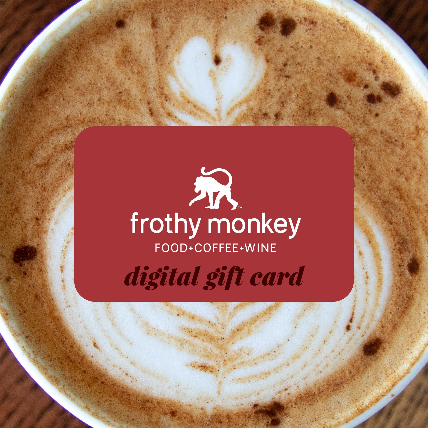 Use for anything from lattes to french toast, a salad, a cheese plate, or a glass of wine. Gift cards can be redeemed at any Frothy Monkey location. Available from $5.00 – $150.00.