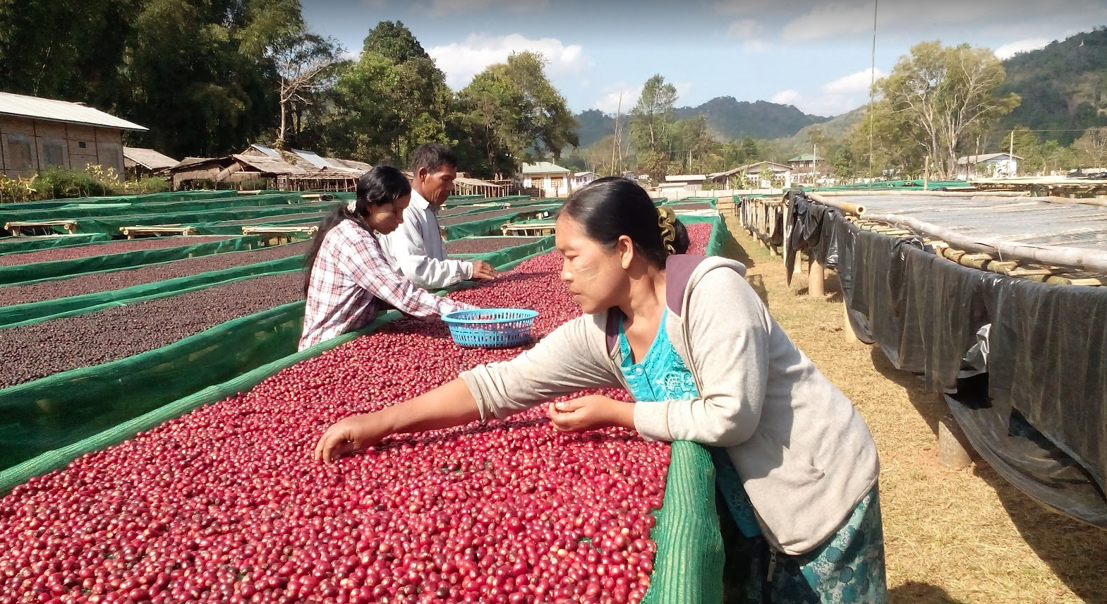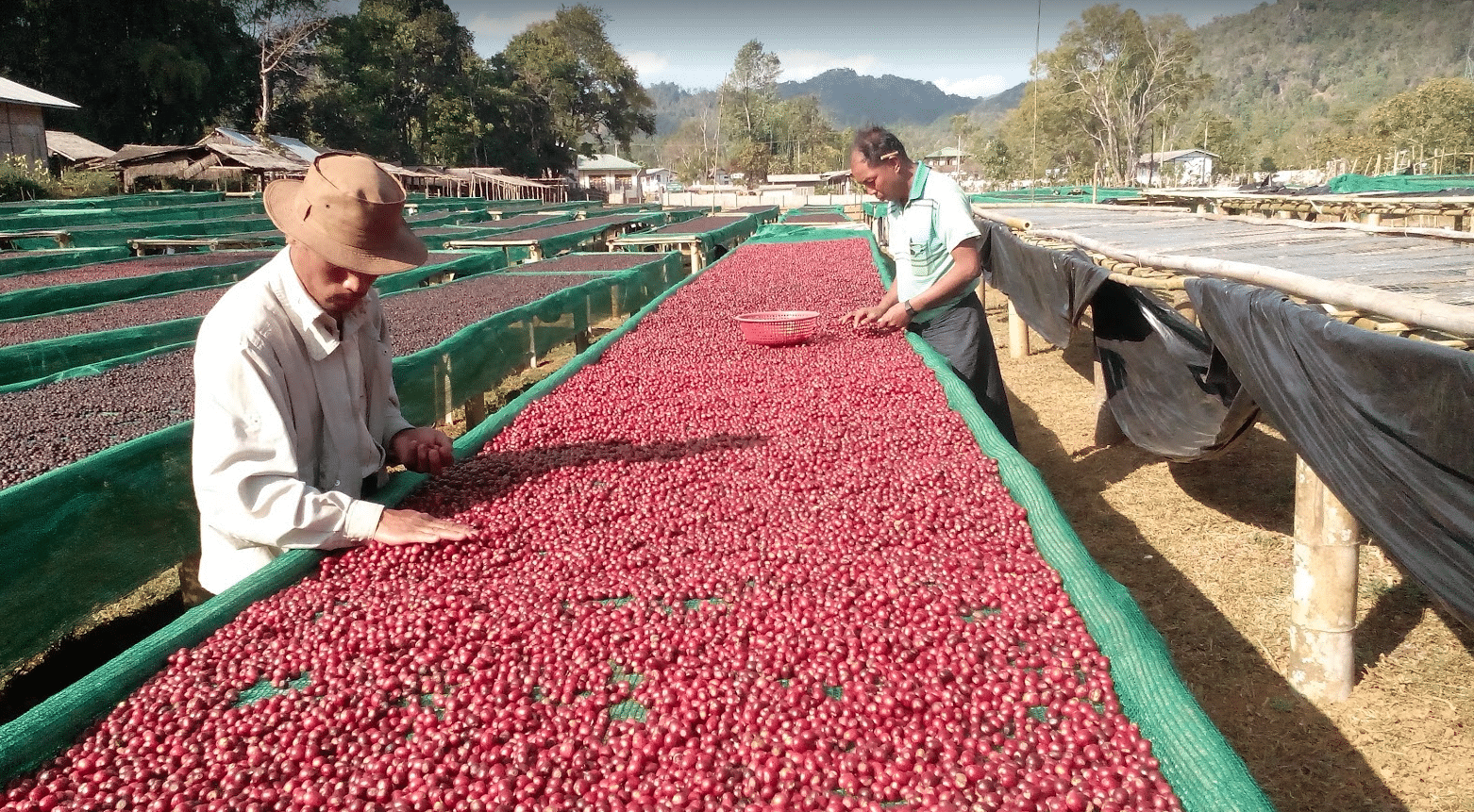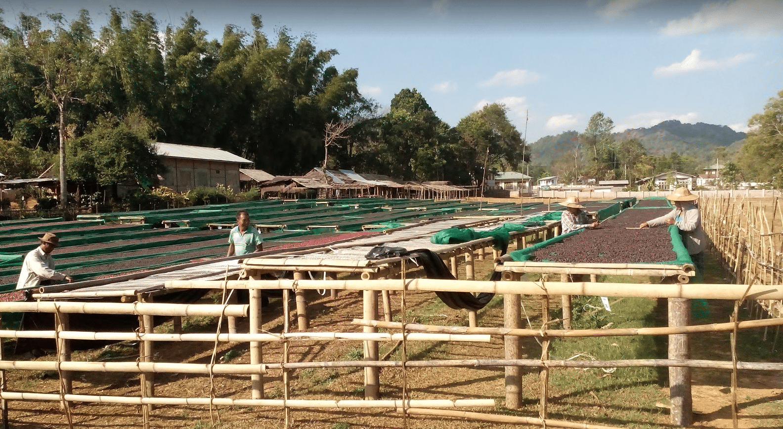 From the hills of Southern Shan State, this remarkable natural process Catuai coffee represents both exceptional flavor and extraordinary dedication. Grown at 1,356 meters by over 400 Danu families in the Kyauk Ku Pyin community, this coffee delivers a remarkably clean cup with a clarity that defies expectations for natural processing.