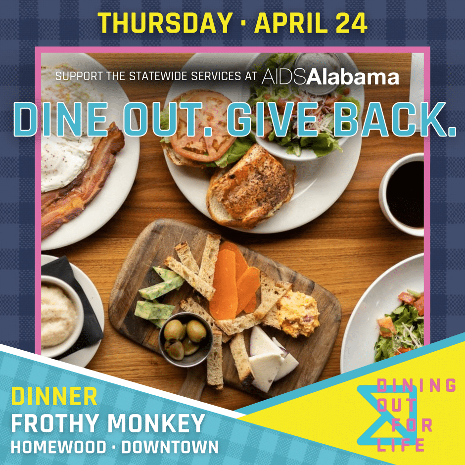 Your Birmingham dinner plans on April 24th can help support your local organizations fighting to end the HIV and AIDS epidemic in Alabama.