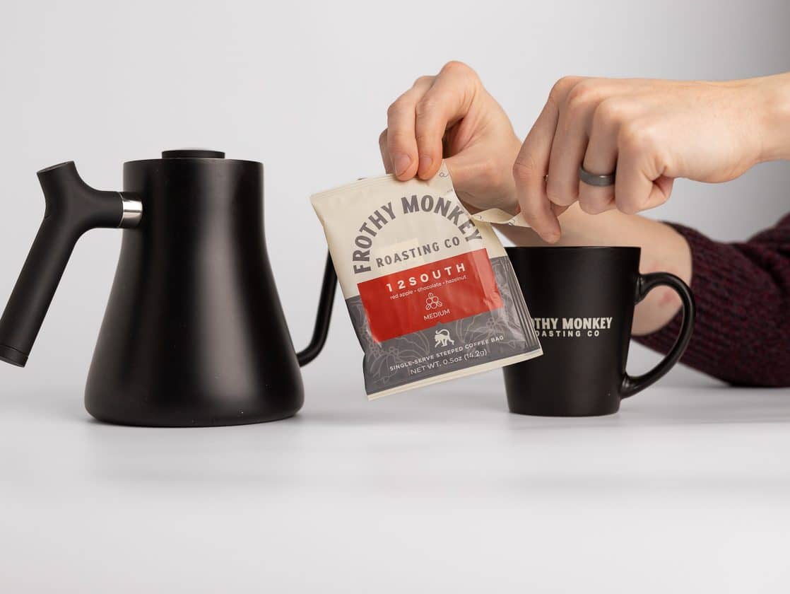 Click here to learn more about Frothy Monkey Single-Serve Coffee Bags and see our team’s brewing video!