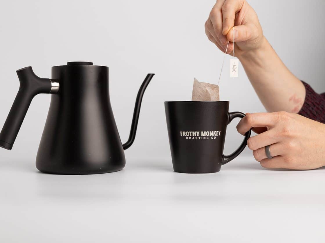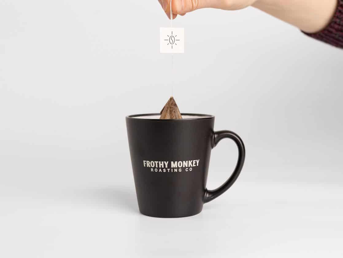 Once 5 minutes have passed remove your coffee bag. For added strength leave the bag in your mug for as long as you’d like.