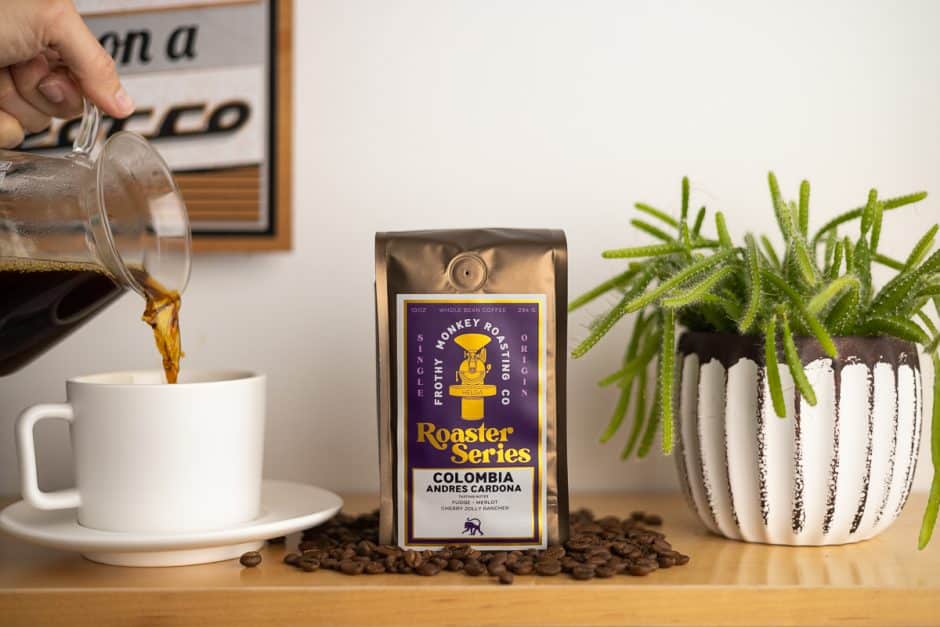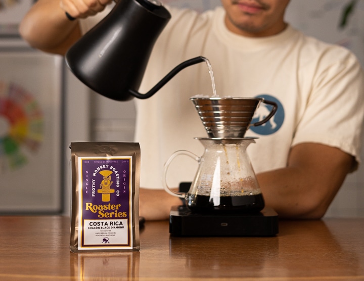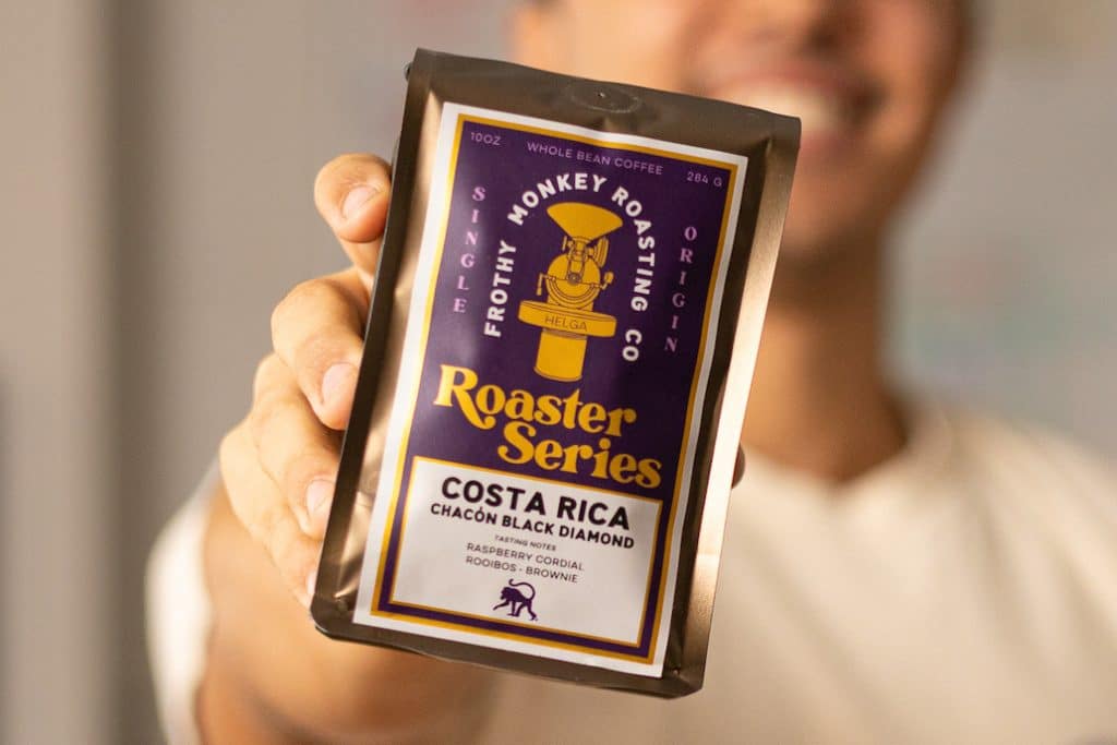 Roaster Series coffees will be available in 10oz bags (whole bean) at Frothy Monkey cafes in very limited supply or order online while supplies last.