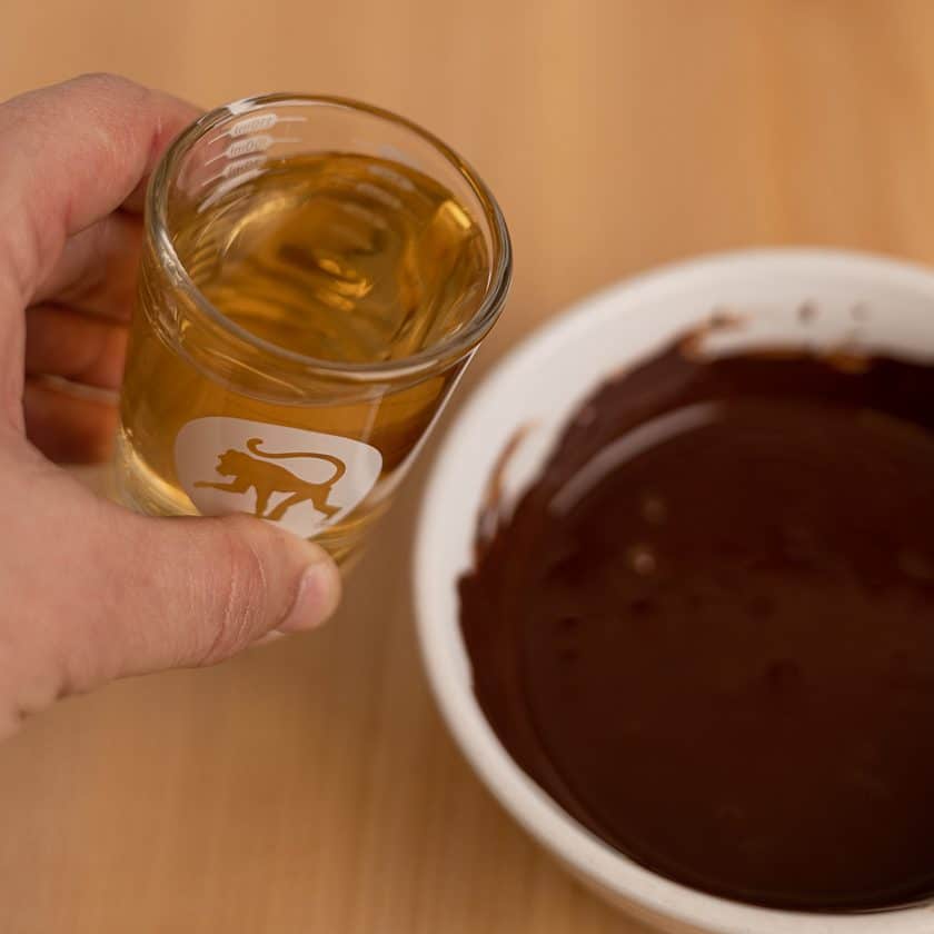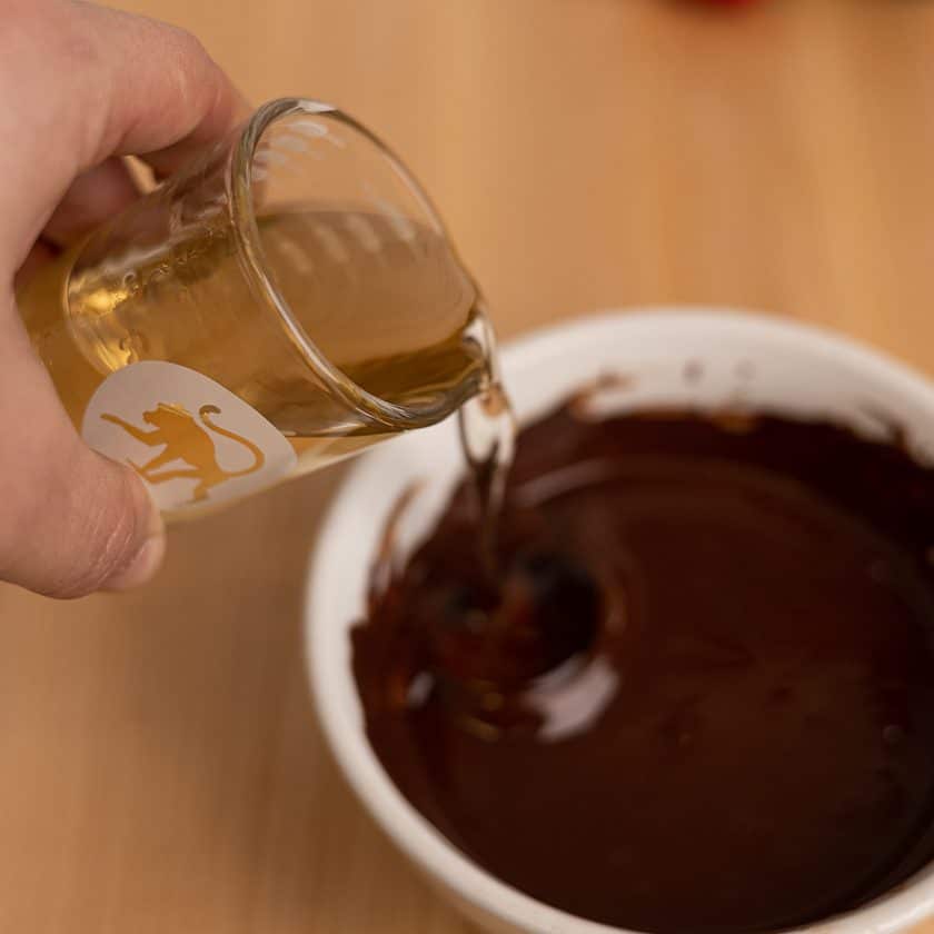 Step 3 – Measure 3 oz of Frothy Monkey Hazelnut Syrup and add to melted chocolate